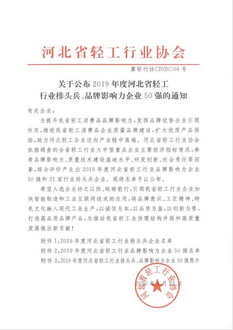 日前,河北省轻工行业协会公布了“2019年度河北省轻工业排头兵企业”名单和“2019年度河北省轻工业50强企业”名单。三河汇福粮油集团有限公司被河北省轻工业协会授予“2019年度河北省轻工业排头兵企业”和“2019年度河北省轻工业50强企业”。